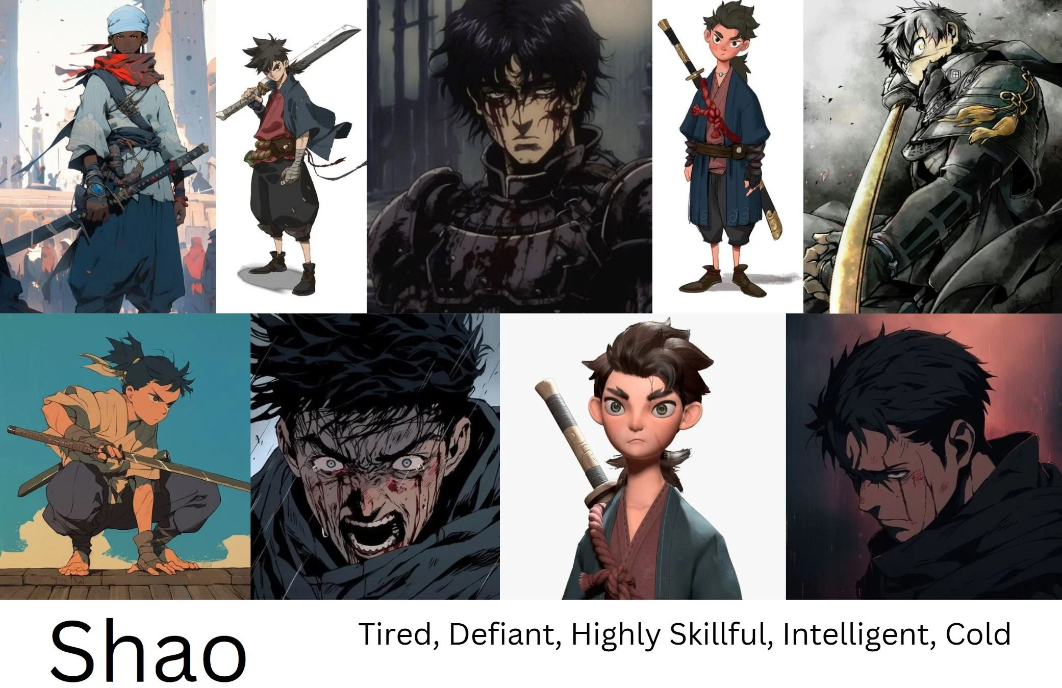 I scoured Pinterest for reference and made a mood board that I thought best represented Shao. After that, I turned on some Japanese Zen music and created a few poses. I might do a couple other poses just to flesh out his character a bit but I did three that I’m pretty happy with. Thanks for reading, mood board and poses below.