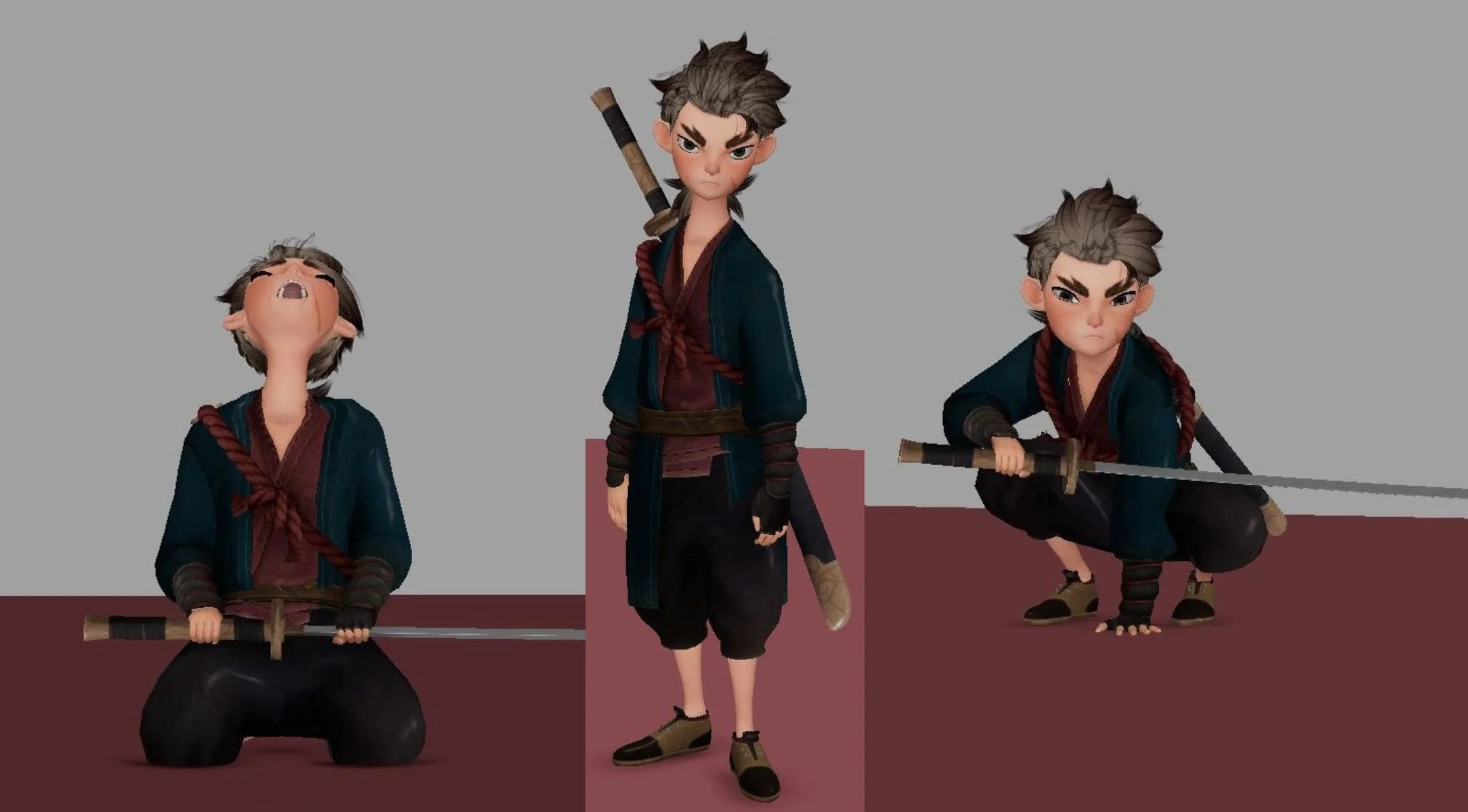 The original plan was to keep working on the animation system for the Jokull character but there’s no personality or backstory there so I’m scrapping my reel. The only shot I’m going to keep is the undead sword swing - after addressing Richard’s notes of course. So I took a look at Kiel Figgins’ shop and really like the vibe of this child swordsman rig and got to work creating a character.